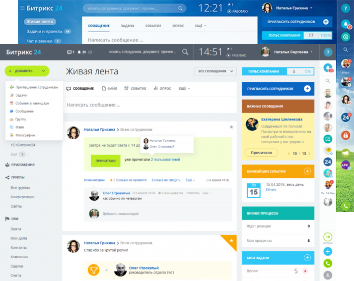 Установите Корпоративный портал Битрикс24 от 1С-Битрикс и вы сможете гарантированно повысить эффективность вашего бизнеса, а именно: выведете конкурентоспособность своей компании на новый уровень и улучшите ее имидж среди партнеров и клиентов, одновременно повысите качество работы сотрудников вашей компании и качество обслуживания клиентов.