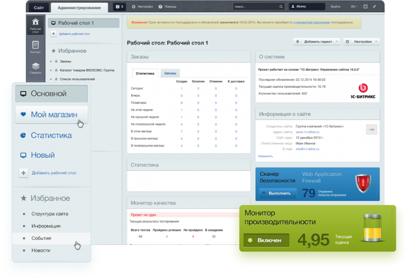 Для непосредственного управления интернет-магазином предназначены специализированные системы, например "1С-Битрикс: Управление сайтом". Специализированная система обеспечивает взаимодействие между интернет-магазином и покупателями через Интернет.