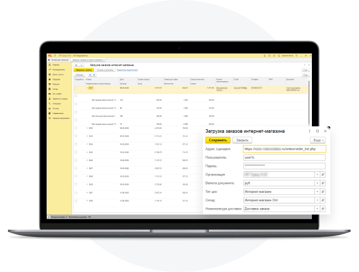 Гибкая настройка параметров обмена заказами позволяет организовать различные комбинированные схемы, когда часть операций производится на сайте, а часть – в бэкофисе «1С».