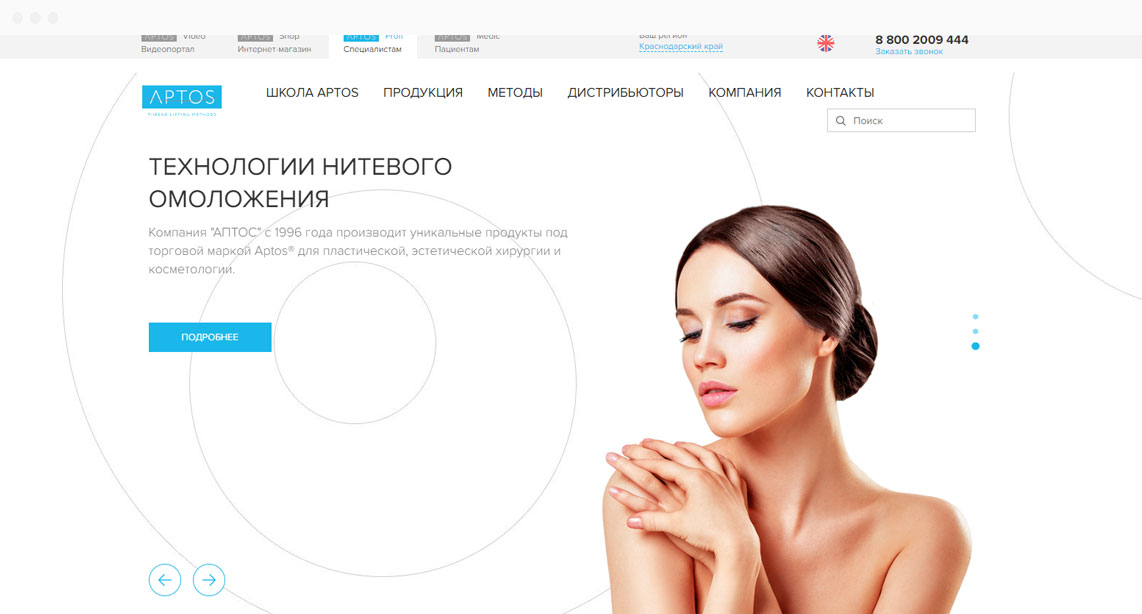 Сайт для производителя продуктов для пластической и эстетической хирургии