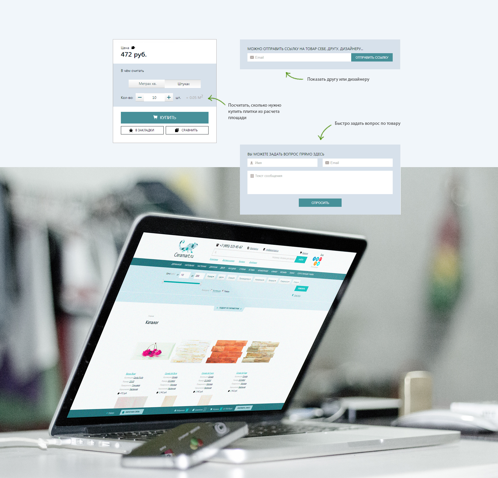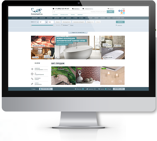 Анонс товарных категорий, фильтр по выбору товара, хиты продаж и акции